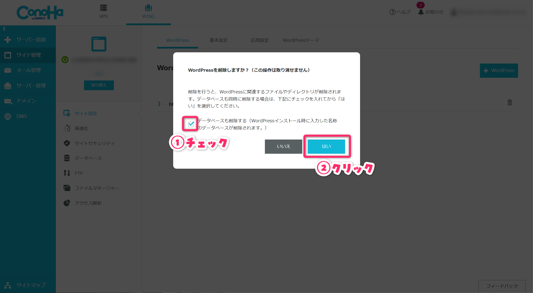 ConoHa WINGでWordPressを削除して、最初からやり直す方法、再インストールのやり方の紹介でした。